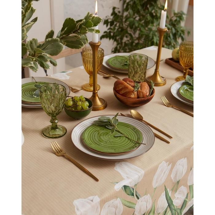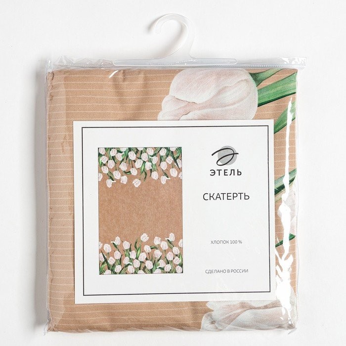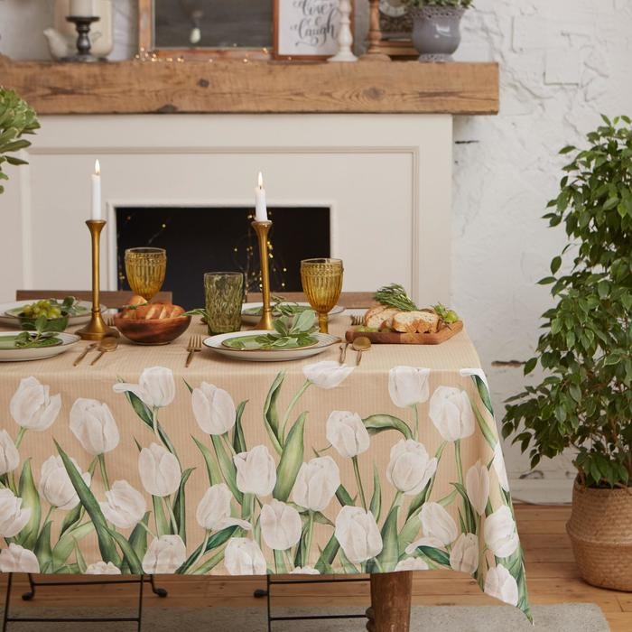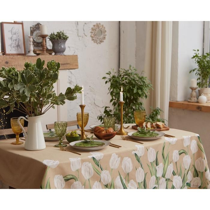 Скатерть «Этель» Белые тюльпаны 149х180см, 100% хл, саржа 190 г/м2