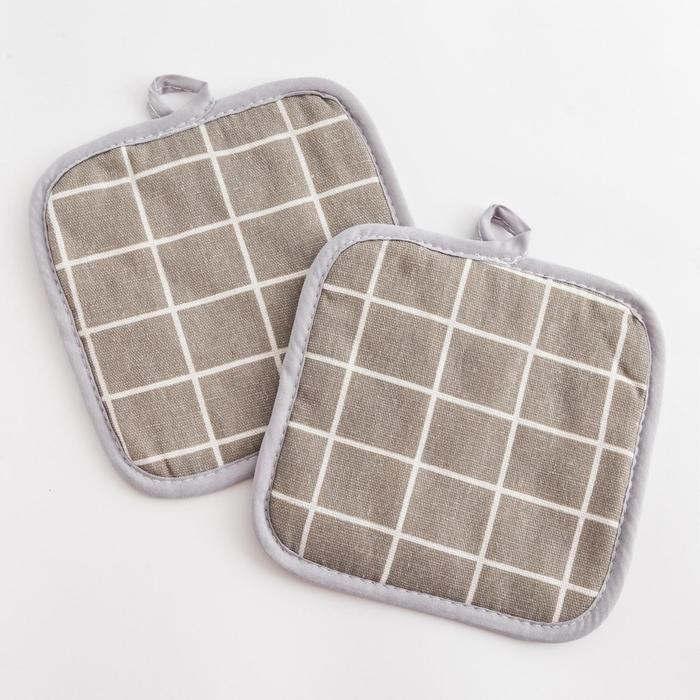 Кухонный набор Доляна «Клетка» цв.серый, прихватка 17*17 см — 2 шт,100% п/э