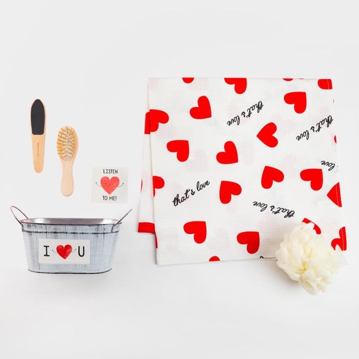 Набор подарочный «Сердечки» с полотенцем (5 предметов)