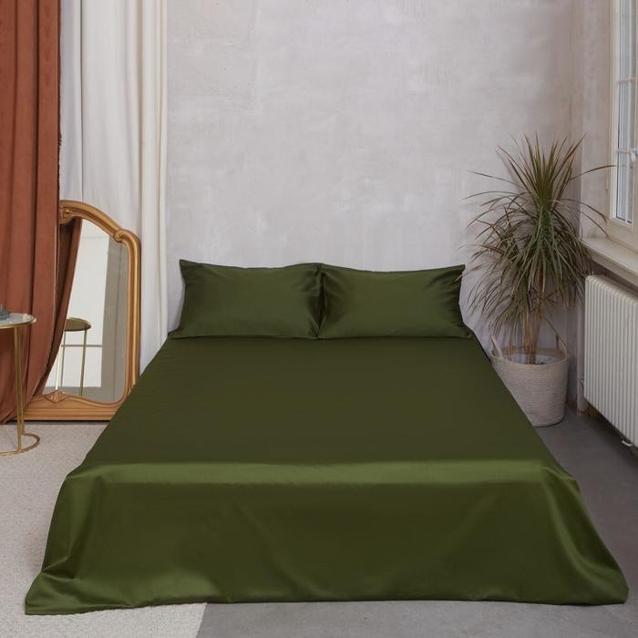 Простыня Этель 220*235 см, цв.хвойный, 100% хлопок, мако-сатин, 125 г/м²