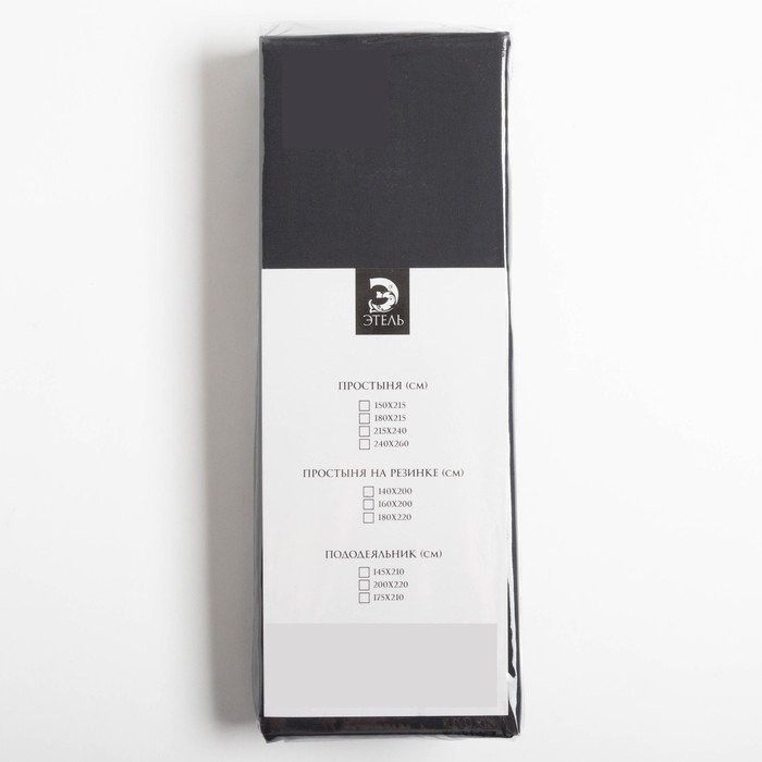 Простыня на резинке Этель 180*200*25 см, цв.черный, 100% хлопок, мако-сатин, 125 г/м²