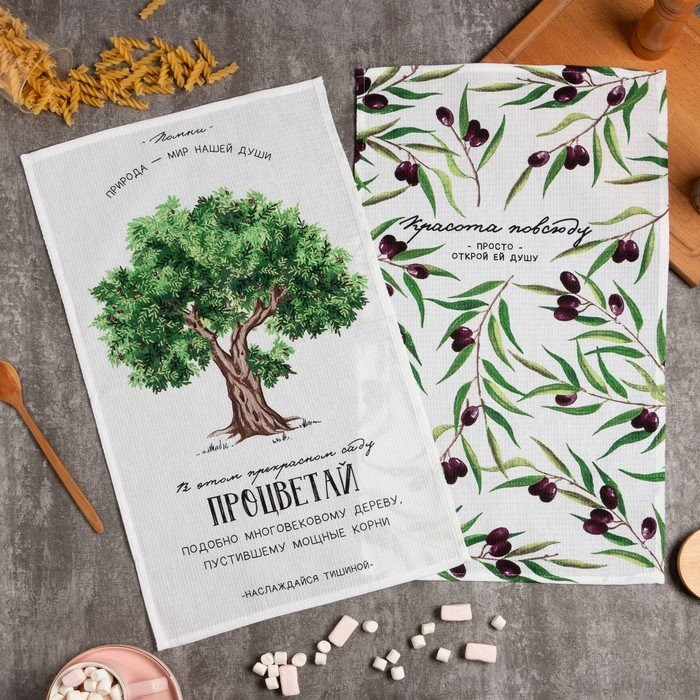 Набор кухонных полотенец Доляна «Процветай», 35х60см-2шт, 100% хл