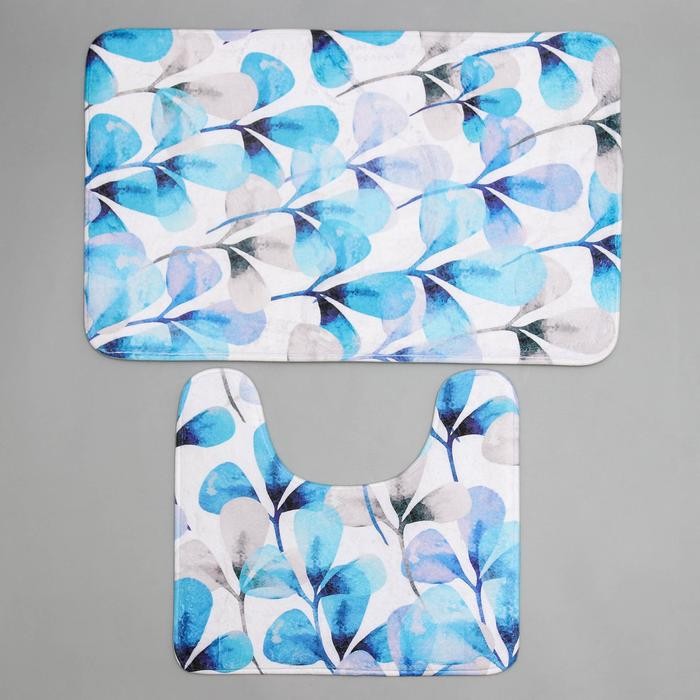 Набор ковриков для ванны и туалета Доляна «Шелла», 2 шт: 45×70, 39×45 см, цвет бело-синий