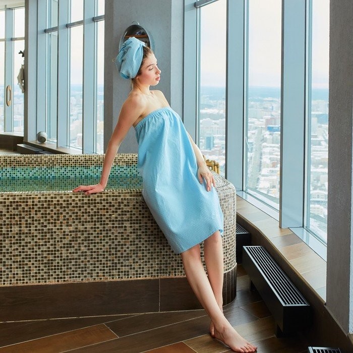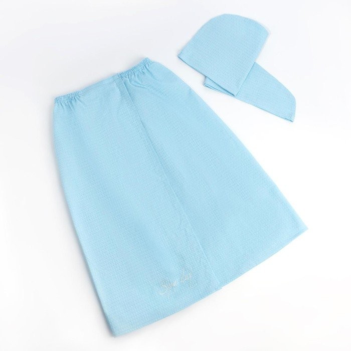 Набор для бани Spa day жен.парео 80×150±4 см, чалма, 100% хл., ваф.полотно, голубой