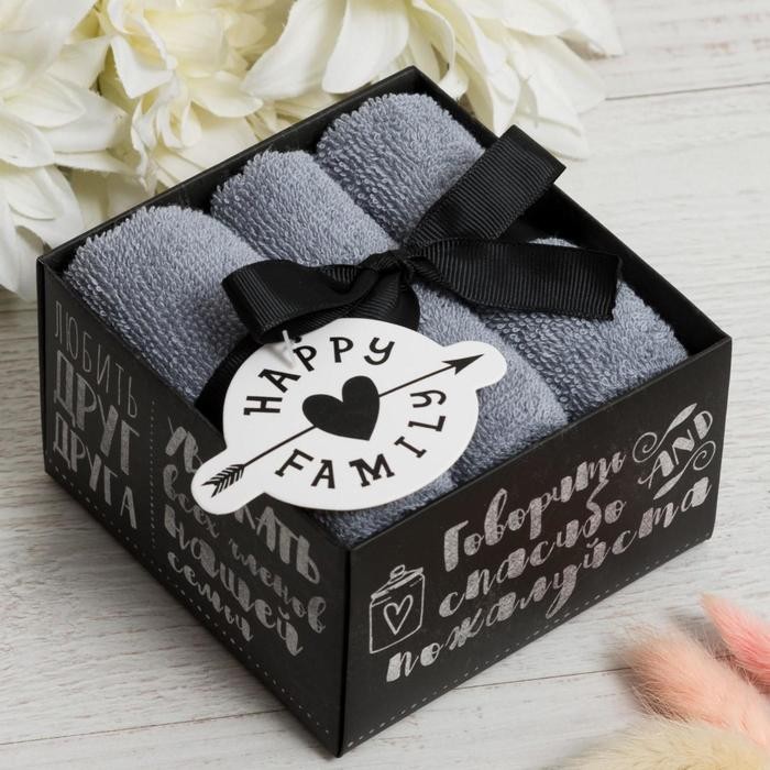 Набор махровых полотенец «Family» 30×30 см — 3 шт, хлопок 340гр/м2